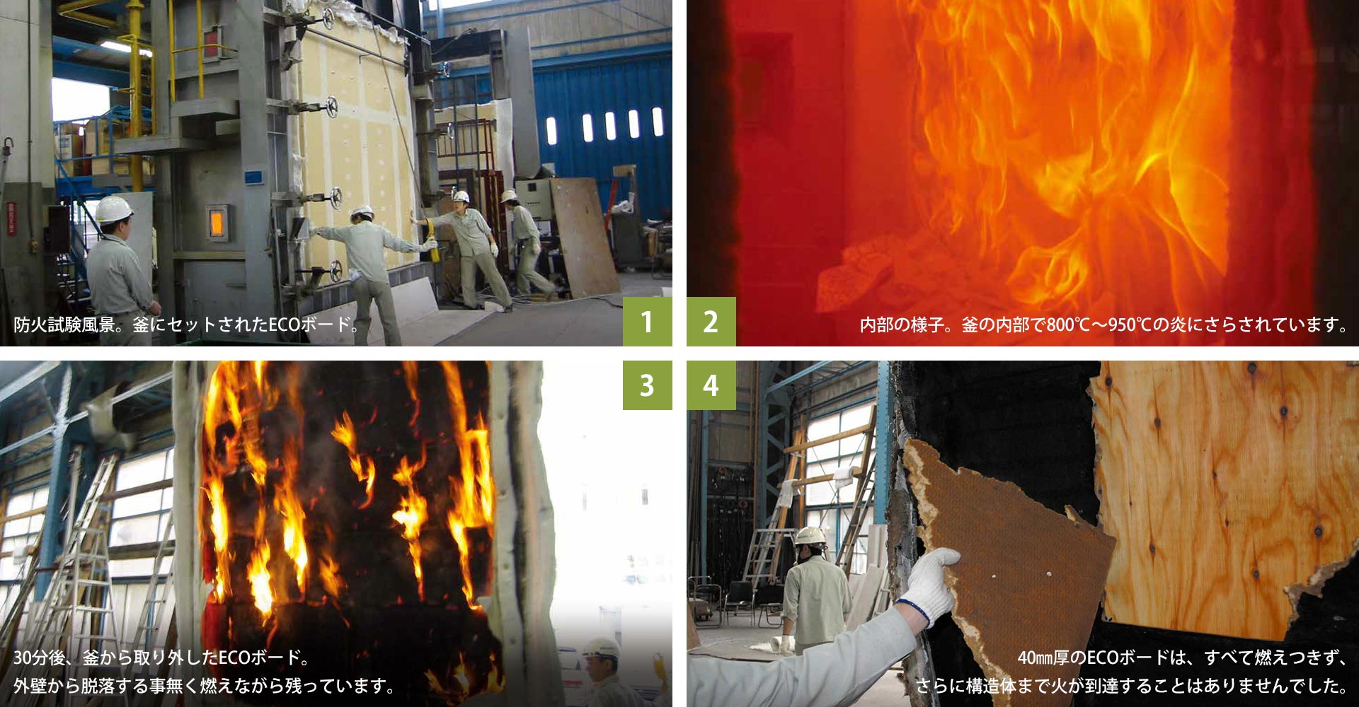 そのため環境建築エコハウスでは、国の定める防火実験を30回以上行い、その防火性能と、有毒ガスを出さない性能を確かめてきました。