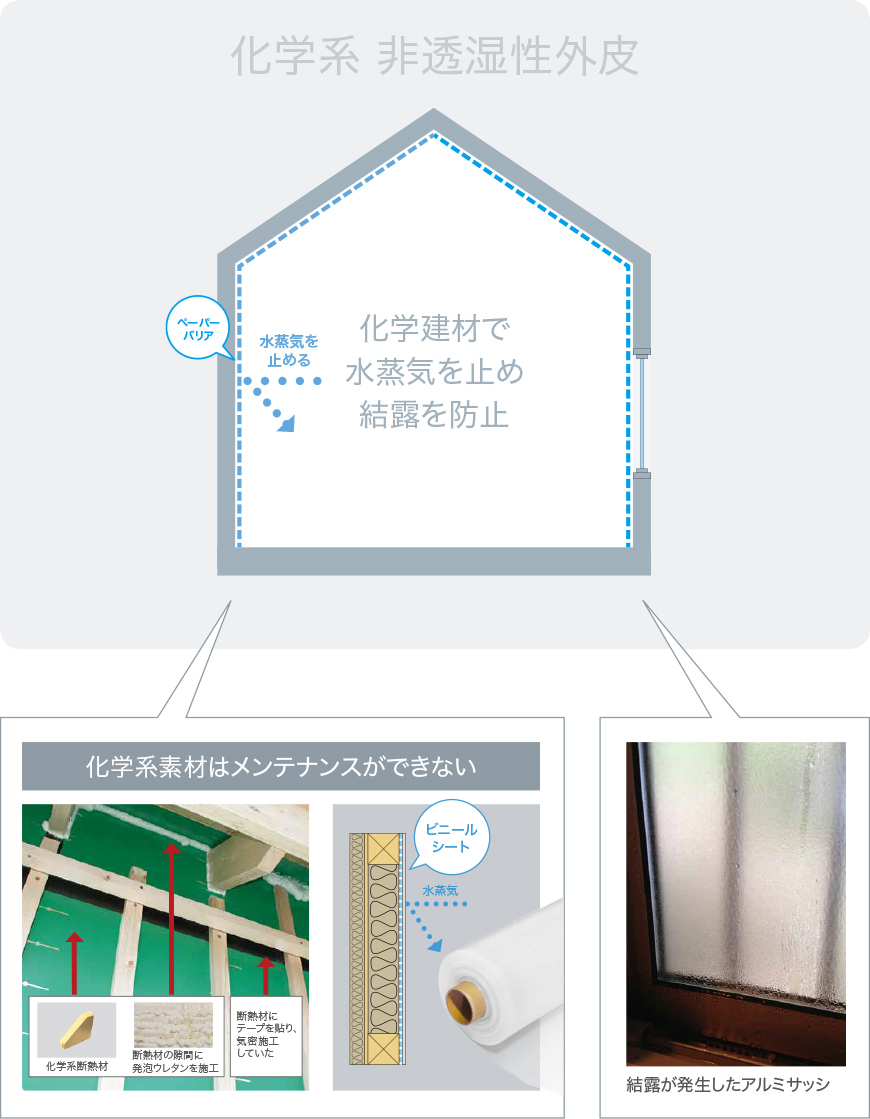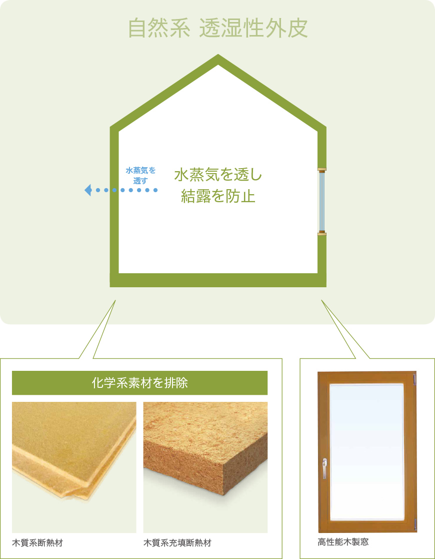 湿気や水蒸気の移動を止めることなく「透す」ことにより結露を防止する
